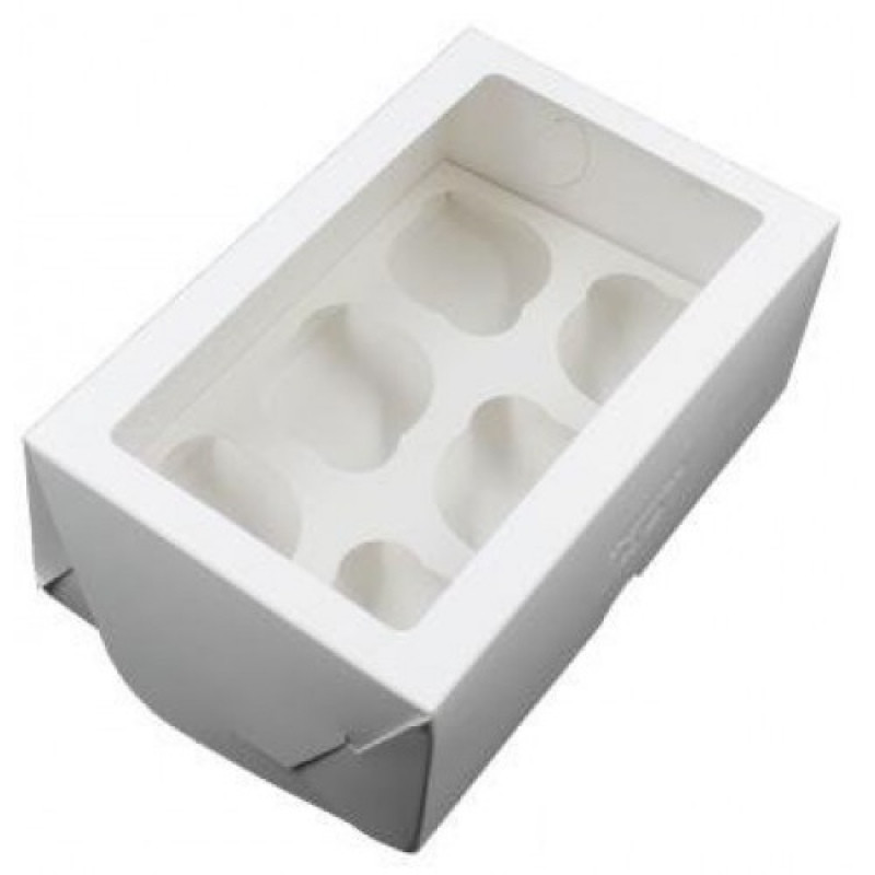 Коробка для 6 капкейков белая с окном 25х17х10 см