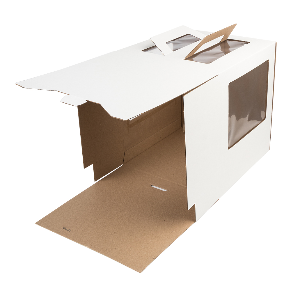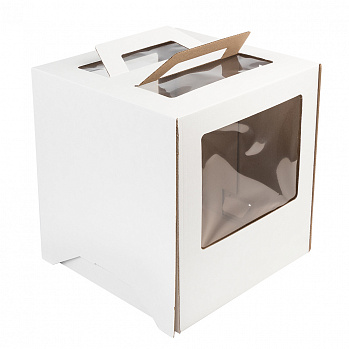 Коробка для торта белая 26*26*28 см, с ручками, окна