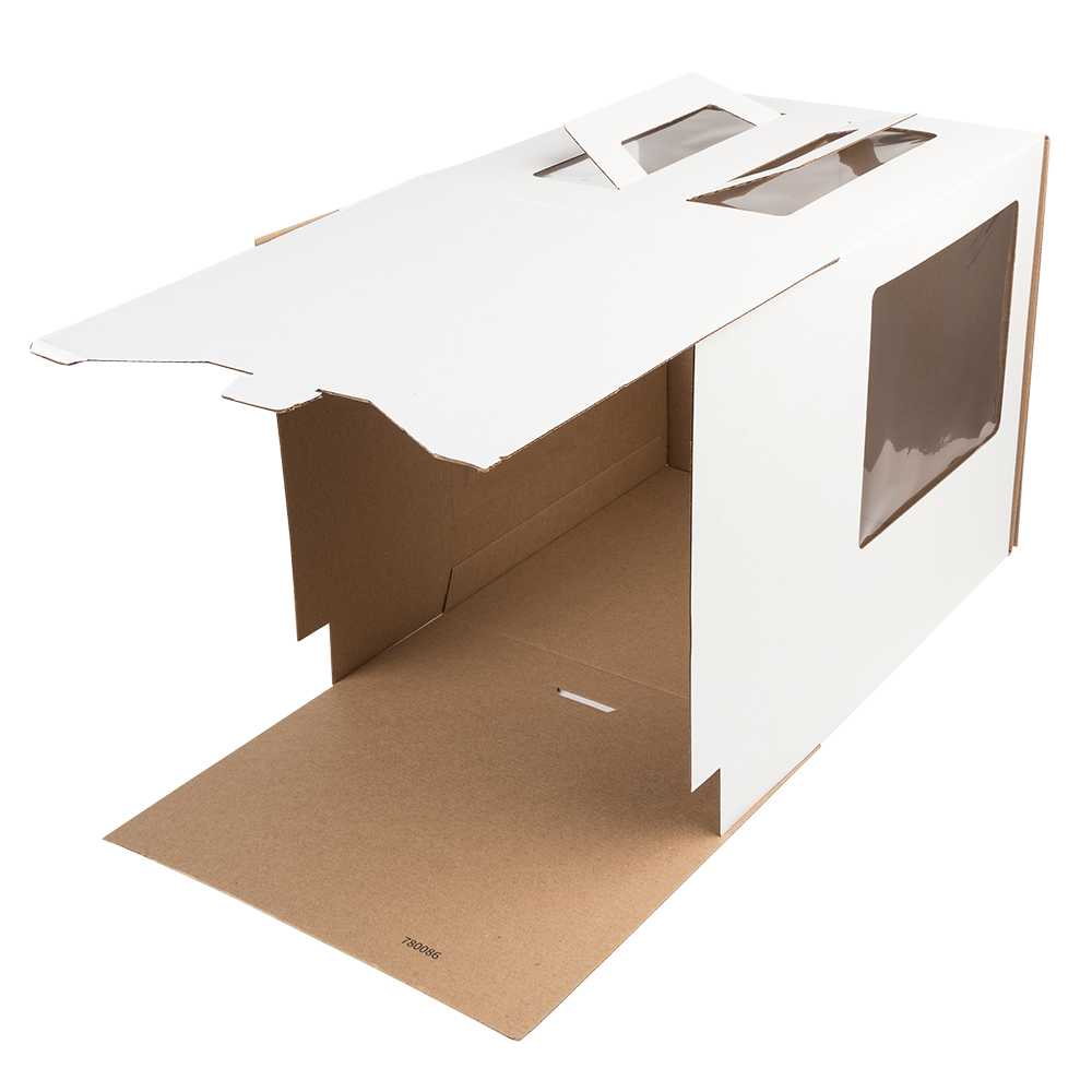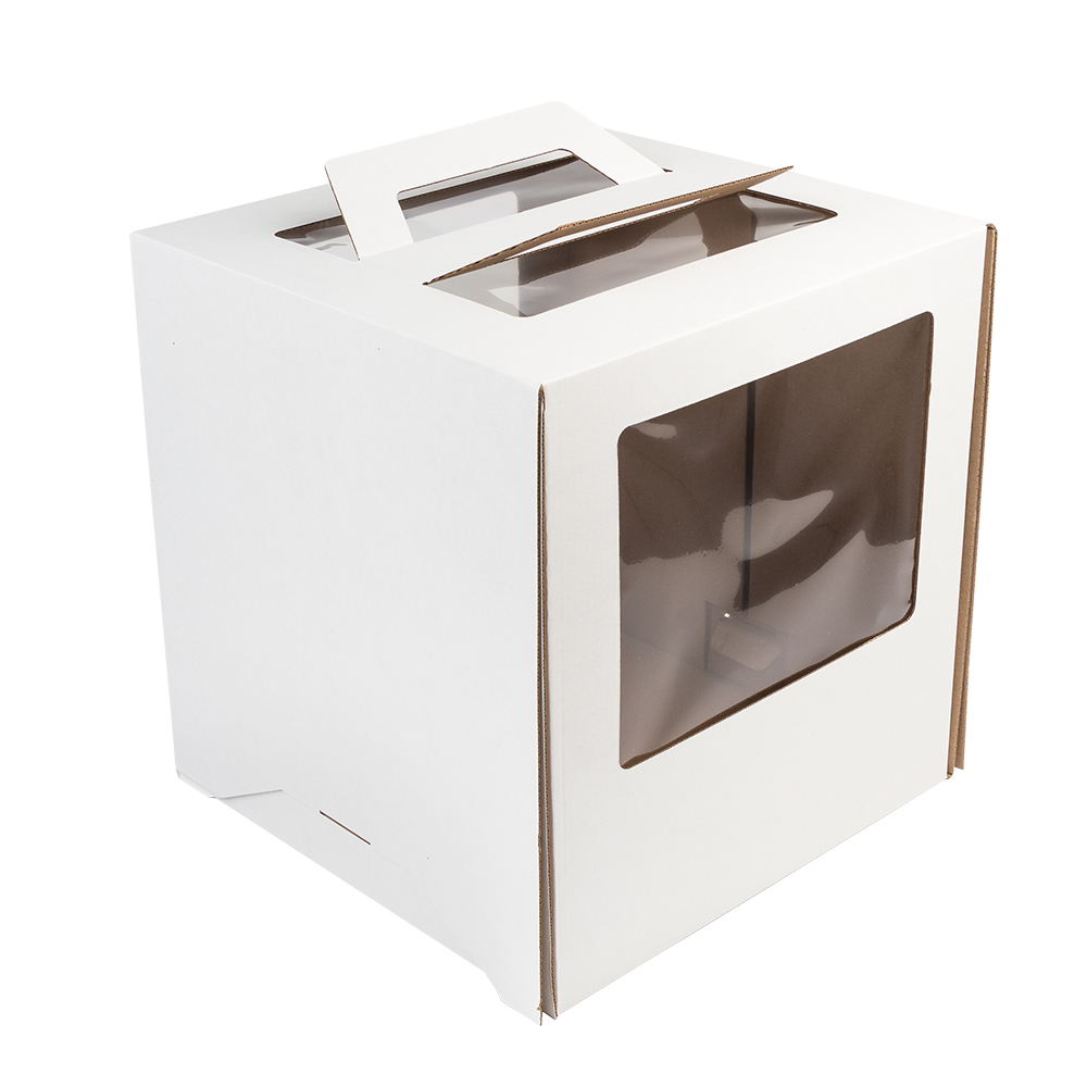 Коробка для торта белая 28*28*30 см, с ручками, окна